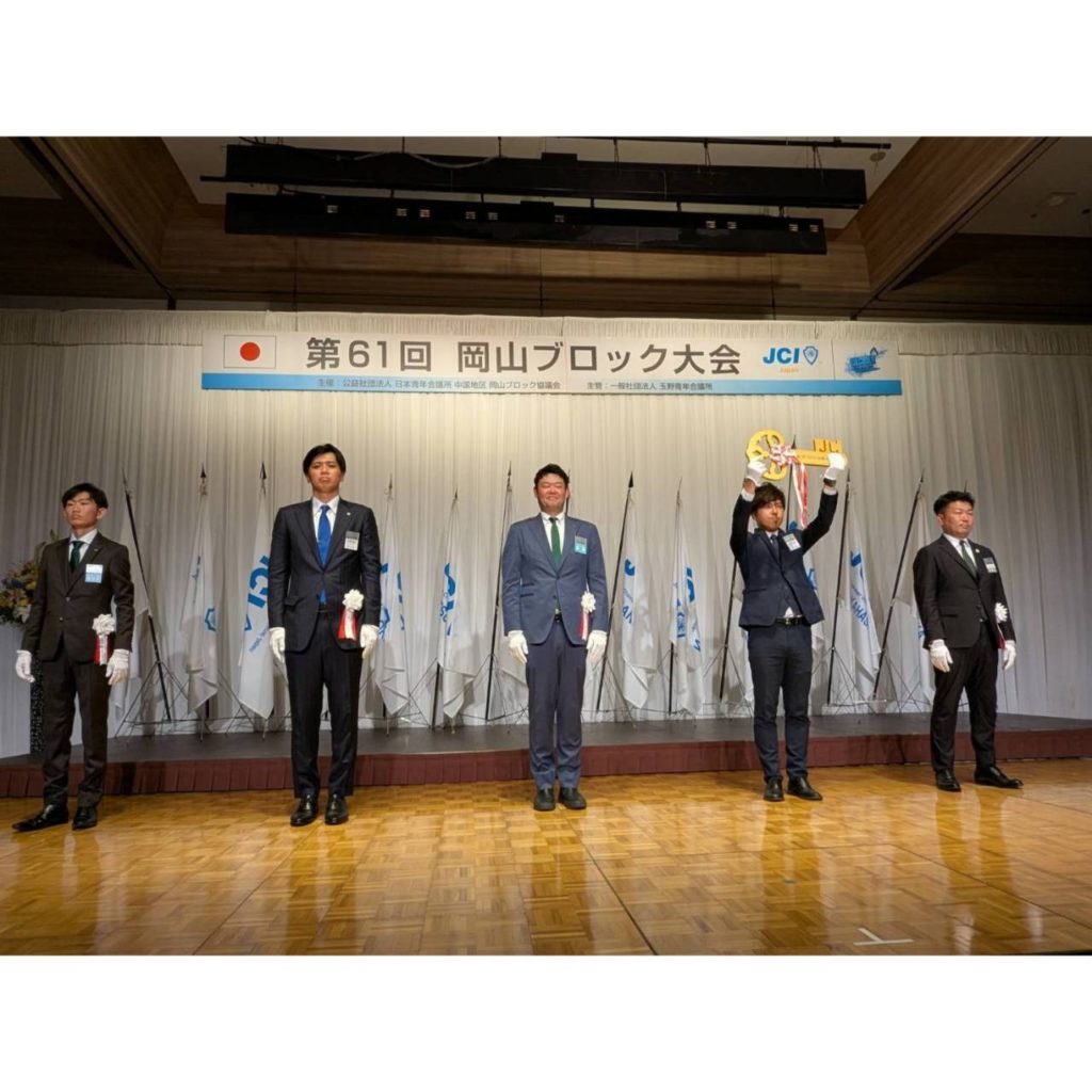 式典では、次年度ブロック会長候補者として玉野JCの加藤太郎君が選ばれた事の発表や、次年度ブロック大会主管LOMとして岡山青年会議所が発表され、大会キーが引き継がれました